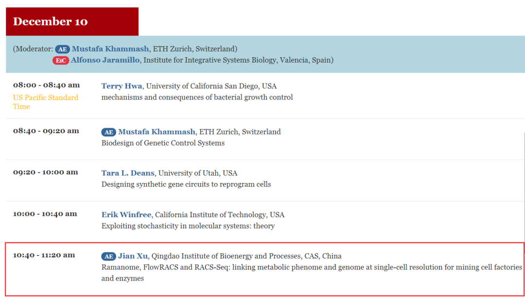 单细胞中心徐健研究员应邀参会,并于12月10日上午做题为“Ramanome, FlowRACS and RACS-Seq: linking metabolic phenome andgenome at single-cell resolution for mining cell factories and enzymes”的报告。